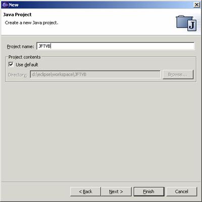 In the Project Name text box, enter JFTVB, which stands for “Java From the Very Beginning” and click Finish. This will create a new project in Eclipse, which will contain our work.