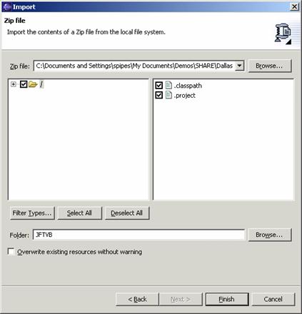 Enter JFTVB in the Folder text box and click Finish to import the project.